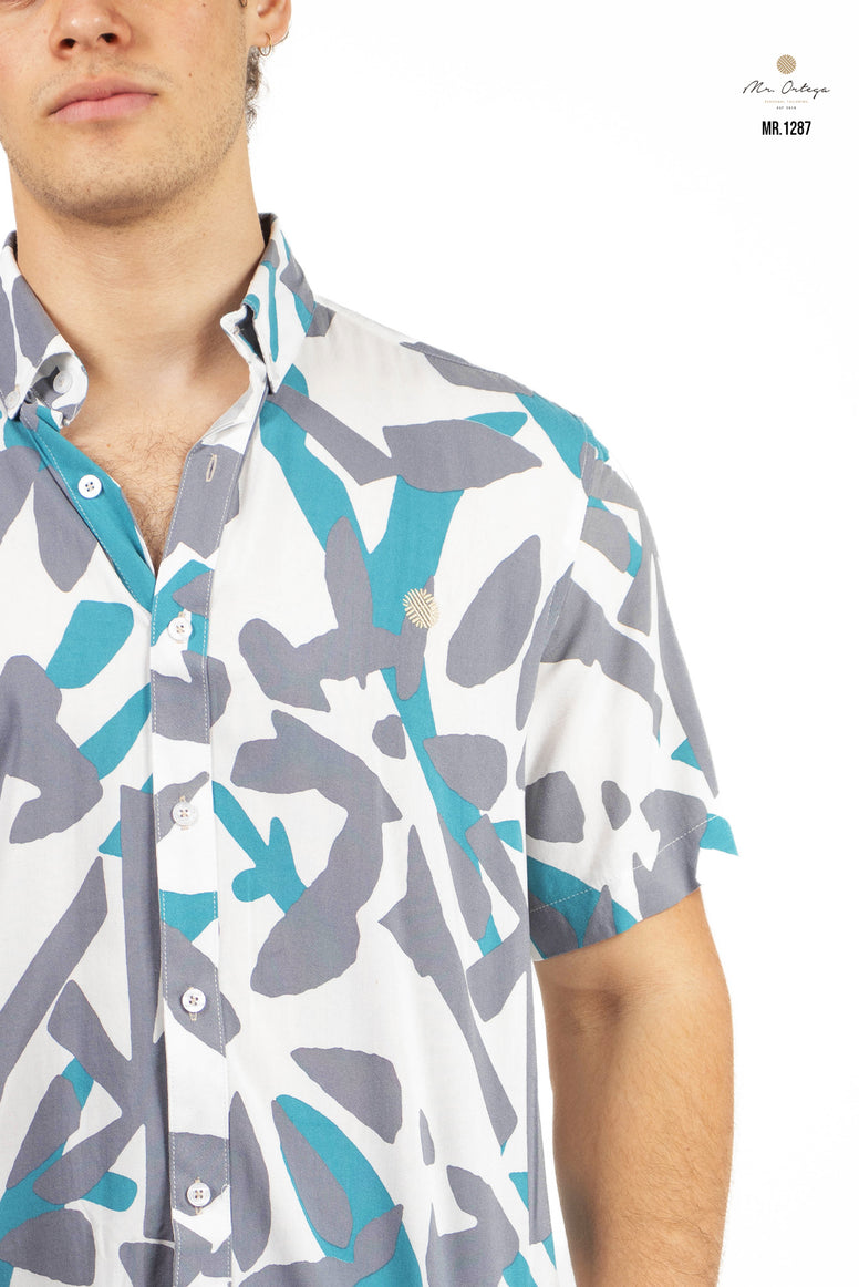 Camisa MR.ORTEGA Blanca Estampado Turquesa y Gris MR.1287