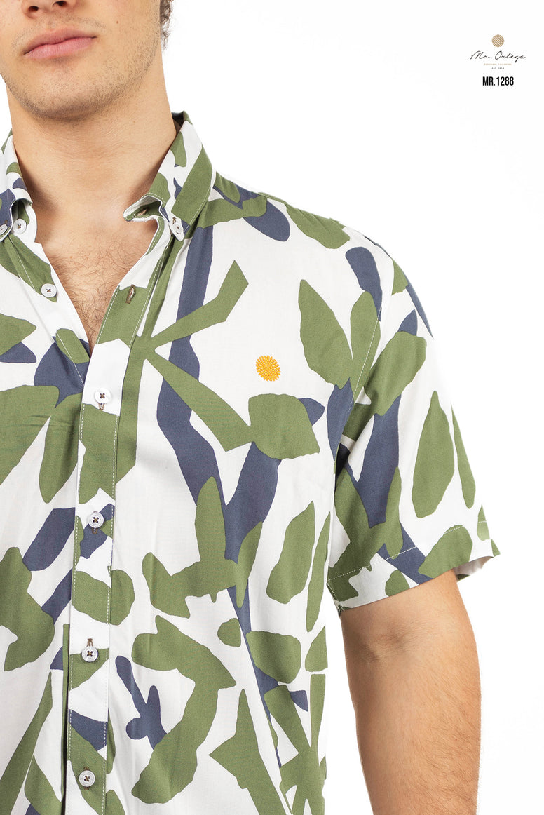 Camisa MR.ORTEGA Blanca Estampado Verde y Azul Marino MR.1288