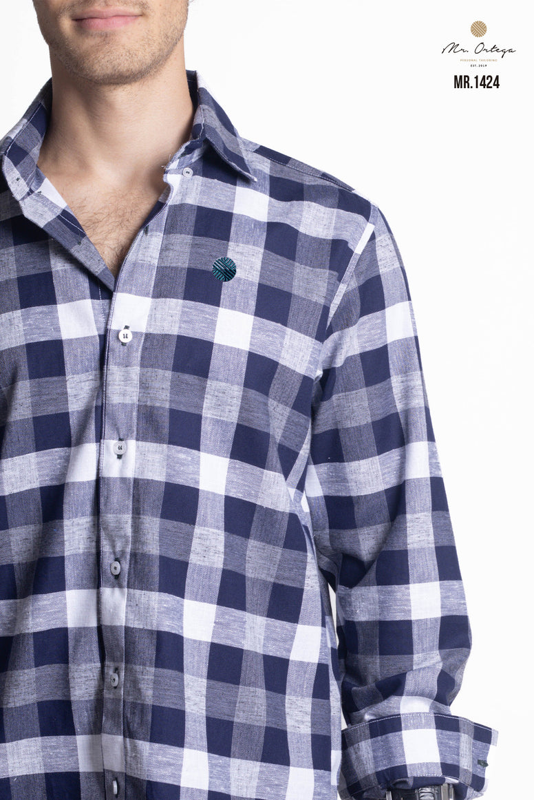 Camisa MR.ORTEGA Cuadros Azul Marino, Blanco y Gris Claro MR.1424