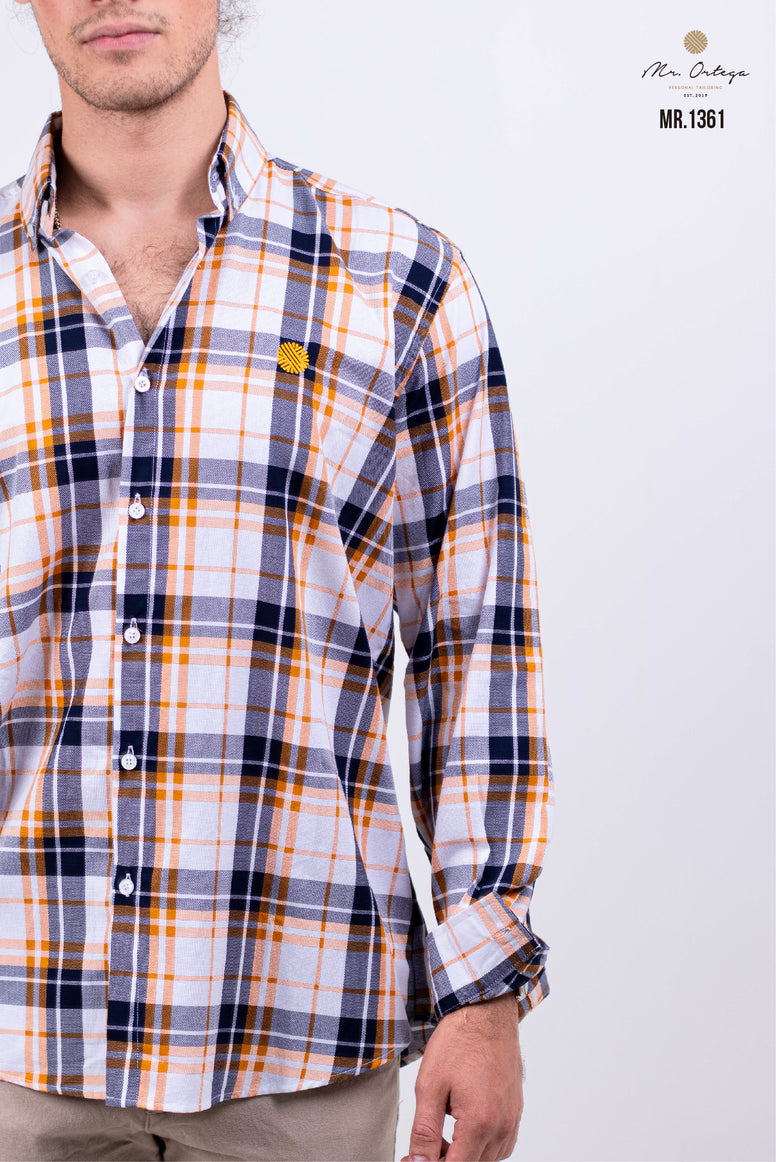 Camisa MR.ORTEGA Cuadros Naranja , Blanco y Marino MR.1361
