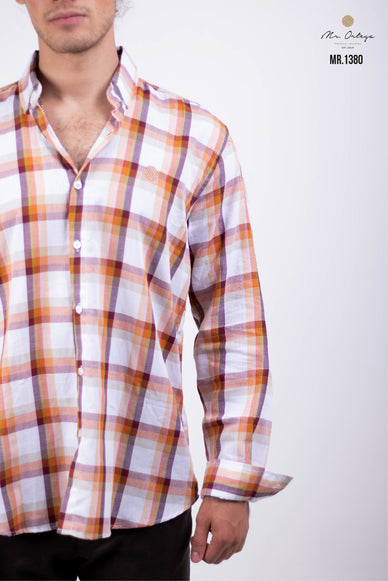 Camisa MR.ORTEGA Cuadros Naranja, Blanco, Tinto y Verde MR.1380