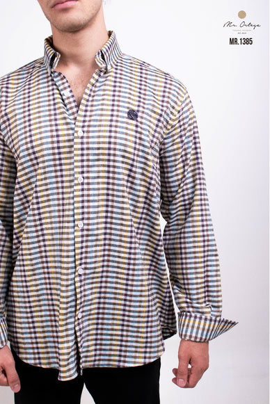 Camisa MR.ORTEGA Cuadros Pequeños Café, Amarillo y Azul MR.1385