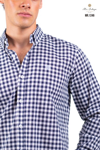 Camisa MR.ORTEGA  Cuadros Pequeños Marino y Blanco MR.1246