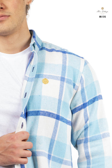 Camisa MR.ORTEGA  Cuadros Azul Cielo y Blanco Franela MR.1215
