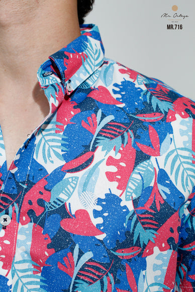 Camisa MR.ORTEGA Hojas Azul Rey Turquesa, Rojo, Marino y Blanco MR.716