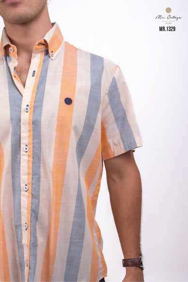 Camisa MR.ORTEGA Rayas Beige, Gris, Naranja MR.1329