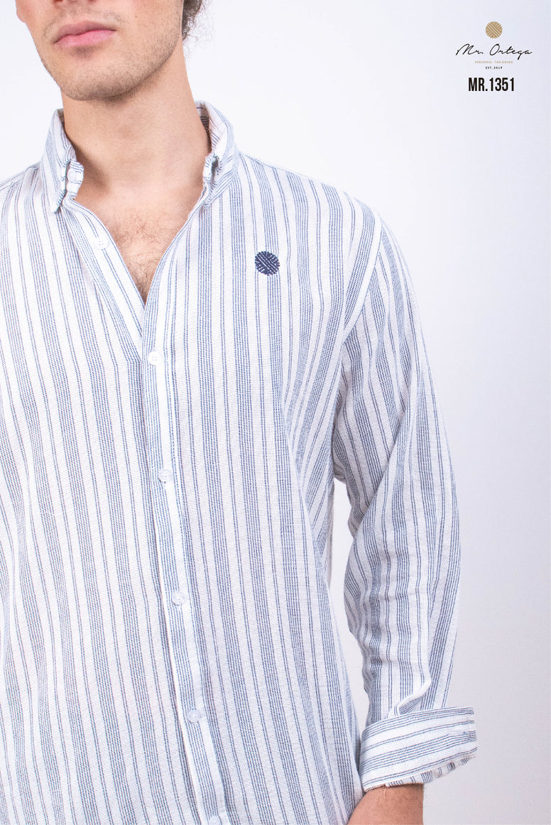 Camisa MR.ORTEGA Rayas Marino Tela Tejida MR.1351