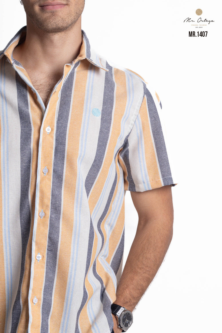 Camisa MR.ORTEGA Rayas Negro, Beige, Azul y Amarillo MR.1407