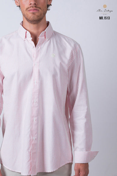 Camisa MR.ORTEGA Rayas Salmon y Blanco MR.1513