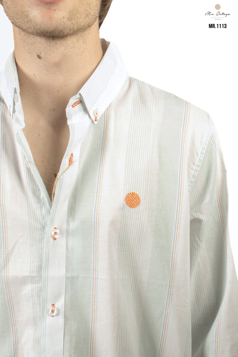 Camisa MR.ORTEGA Rayas Verde Agua, Hueso, Rosa y Azul MR.1113