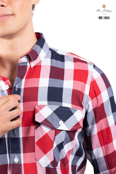 Camisa MR.ORTEGA Cuadros Blanco, Marino, Rojo Doble Bolsa MR.1064