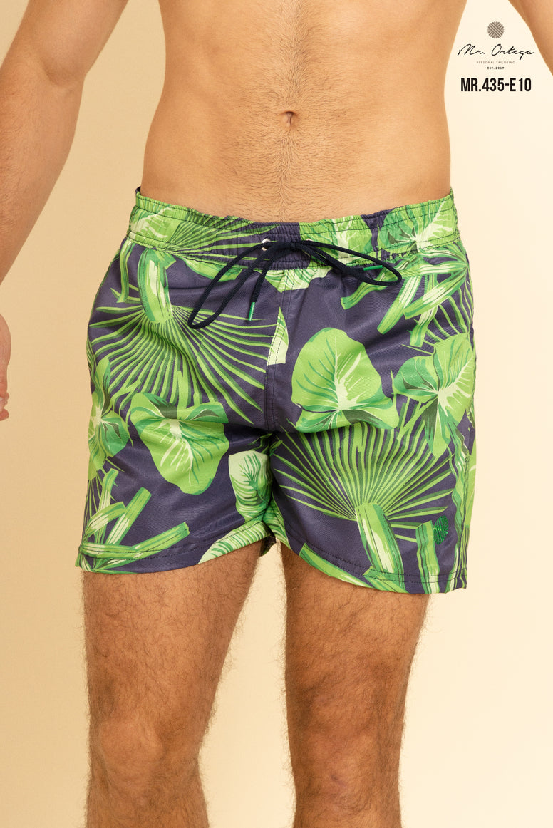 TRAJE DE BAÑO AZUL MARINO ESTAMPADO VERDE