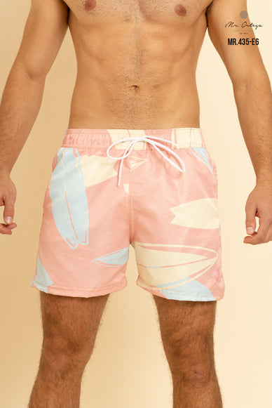 Traje De Baño Rosa Estampado Azul Y Amarillo